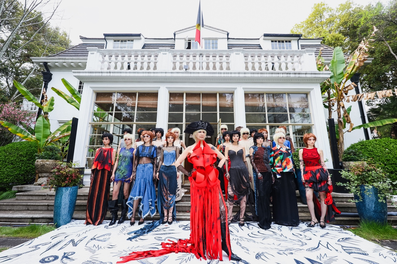 Two Antwerp-trained Chinese designers debuted their first collection in the Belgian Consulate garden in Shanghai.